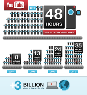 Tout d’abord, vos vidéos. En novembre, nous vous mettions au défi d’envoyer encore plus de vidéos sur le site. Et bien mission accomplie ! Aujourd’hui, plus de 48h (2 jours) de vidéos sont envoyées chaque minute sur YouTube, en augmentation de 37% par rapport à il y a 6 mois, et de 100% par rapport à l’année dernière. Des premiers pas d’un bébé à Ann Arbor, aux manifestations en Syrie, en passant pas le discours d’ouverture à l’Université de Yale, nous continuons à être impressionnés et inspirés par la qualité et la diversité des vidéos diffusées sur YouTube chaque jour.