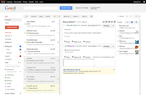 Lorsque je consulte mes emails, je me fie souvent aux extraits affichés pour déterminer quels messages ouvrir en premier. il m’arrive cependant souvent de vouloir en savoir plus, c’est pourquoi je suis ravi d’annoncer que vous pouvez désormais afficher vos messages directement dans la boîte de réception grâce à une nouvelle fonctionnalité des Labs nommée Volet d’aperçu. La nouvelle organisation de la boîte de réception rappellera sans doute quelque chose à ceux qui ont déjà utilisé Gmail sur une tablette. Nous pensons également que cette nouvelle interface convient particulièrement aux écrans en haute résolution.