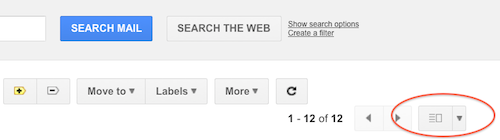 Après avoir activé le Volet d’aperçu sous l’onglet Labs des paramètres de messagerie, vous verrez un nouveau bouton en haut à droite de votre liste de messages, qui vous permettra de basculer entre les vues Aperçu et Liste.