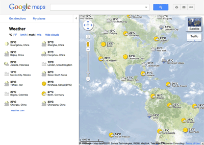 Que vous organisiez un voyage outre-atlantique, ou un pique-nique dans votre ville, connaître les prévisions météo est crucial. Nous ajoutons aujourd’hui un calque “Météo” sur Google Maps affichant les conditions météo actuelles dans le monde entier, ce qui vous aidera, nous l’espérons, à mieux prévoir vos déplacements.