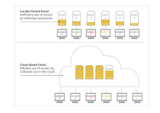Nous avons comparé Gmail avec les solutions traditionnelles de messagerie d’entreprise, et les résultats sont sans appel : passer à Gmail peut se révéler jusqu’à 80 fois plus écologique qu’un serveur email interne. Ceci s’explique pas la très bonne efficacité énergétique des data centers conçus pour gérer une quantité importante de trafic et utilisant des composants matériels et logiciels spécialement développés pour les services fournis - des conditions que les petites entreprises sont rarement capables de créer en interne.