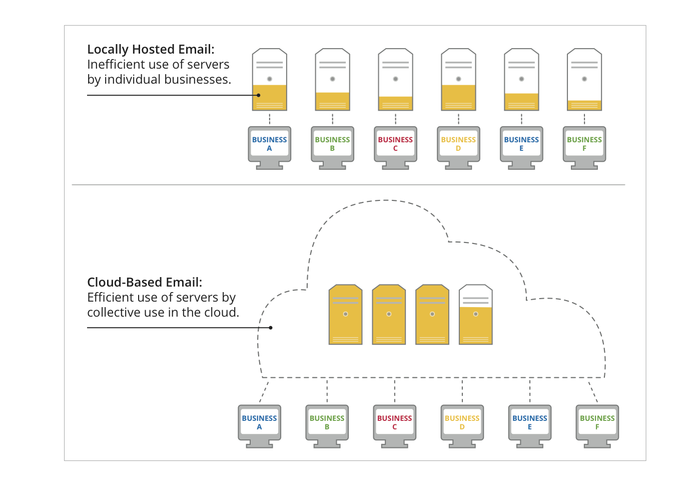 Comparaison des serveurs internes inefficaces aux serveurs Cloud.