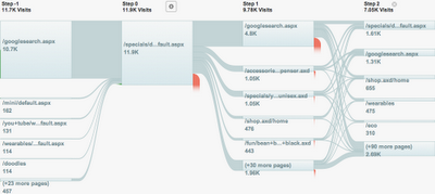 Les pages en amont et en aval d’un noeud sont automatiquement regroupées selon le flux de visiteurs le plus courant, et nous développons de nouveaux outils pour vous aider à regrouper des parcours sensibles ou des pages similaires.