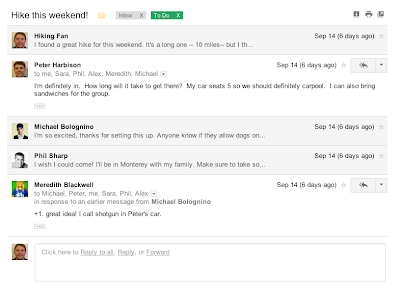 Les conversations ont été complètement repensées pour vous aider à mieux parcourir vos emails. Vous verrez désormais les photos de vos contacts afin que vous puissiez plus facilement identifier qui dit quoi. Nous avons également éliminé autant d’éléments superflus que possibles pour vous aider à vous concentrer sur ce qui compte pour vous : communiquer avec vos amis et vos collègues.