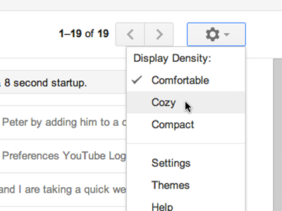 Nous savons que vous utilisez Gmail depuis une large gamme de tailles d’écrans et d’appareils, c’est pourquoi nous avons fait en sorte que les espaces entre les éléments de l’interface se redimensionnent automatiquement selon votre écran. Si vous préférez une interface dense quelle que soit la taille de votre écran, vous pouvez changer la densité manuellement depuis les paramètres de la messagerie.